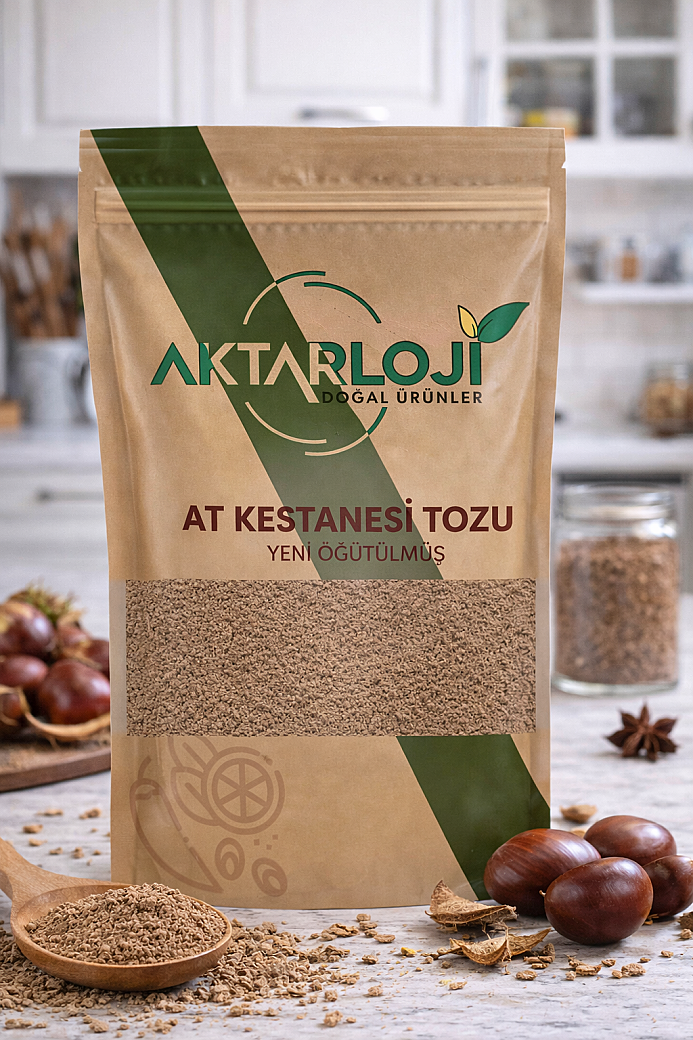 At kestanesi tozu, at kestanesi bitkisinin tohumlarının kurutulup öğütülmesiyle elde edilen doğal bir takviyedir. At kestanesi, bu özelliği sayesinde damar sağlığını iyileştirmede, kan dolaşımını hızlandırmada ve anti-enflamatuar etkilerde oldukça güçlüdür. At kestanesi tozu, bu bitkinin tüm faydalarını içerir ve damar sağlığını korumaya yardımcı olur. Ayrıca, ciltteki yaraların iyileşmesini destekler, kas ve eklem ağrılarını hafifletir.