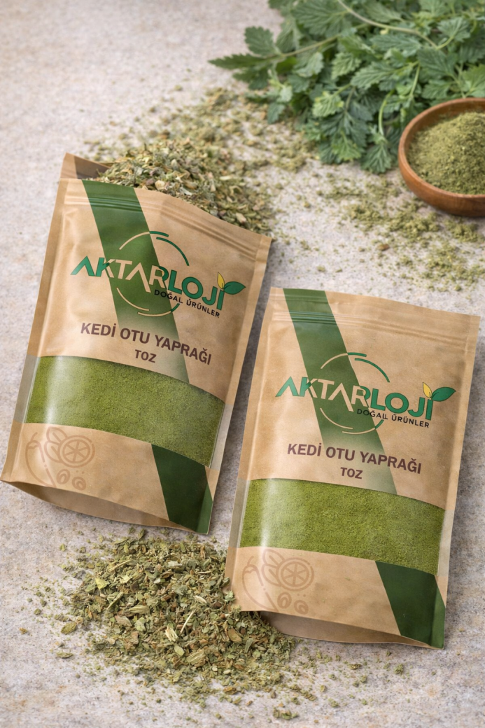 Kedi otu yaprağı tozu, kedi otu bitkisinin kurutulmuş yapraklarından elde edilen ve doğal olarak sakinleştirici özelliklere sahip bir bitkisel üründür. Stres, anksiyete ve uyku sorunlarının hafifletilmesinde destekleyici olarak kullanılır. Çay yapımında veya farklı takviye formlarında tüketilebilir. Rahatlatıcı etkileri nedeniyle geleneksel tıpta sıkça tercih edilen bu toz, doğal bir rahatlama arayanlar için alternatif bir seçenek sunar.