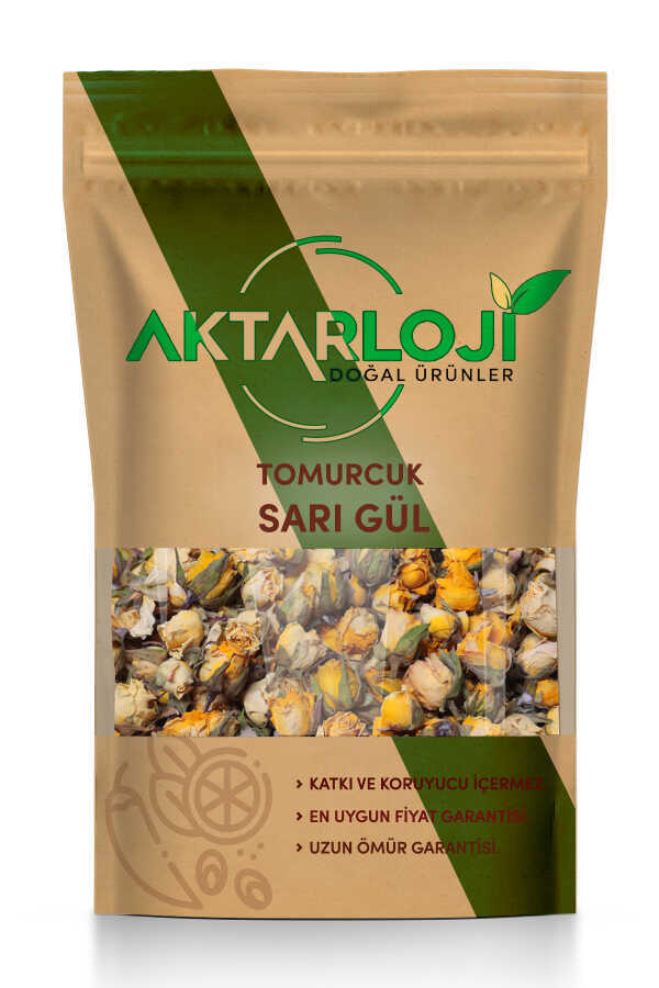 Sarı tomurcuk gül kurusu, tamamen doğal ve katkısız yöntemlerle kurutulmuş sarı güllerden elde edilir. Kurutma işlemi sırasında çiçeğin canlı sarı rengi ve hoş kokusu korunur. Hafif tatlımsı ve çiçeksi bir aromaya sahip olan bu gül tomurcukları, ferahlatıcı etkisiyle çaylarda ve kozmetik ürünlerde yaygın olarak tercih edilir. Yapısında bulundurduğu besin bileşenlerinden ötürü sağlığı desteklemeyi başarır.